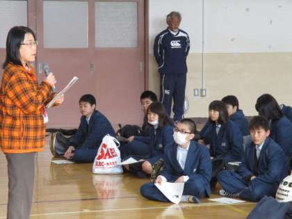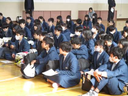 6時間目、明日の公立高校の前期選抜試検に向けて、最後の注意と激励のための学年集会をもちました。