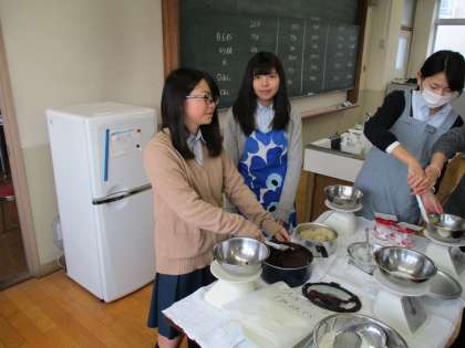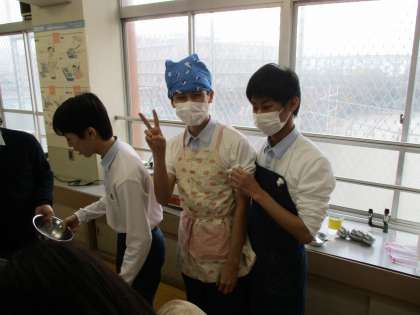 可愛いいこの子たちは家庭科の時間にイチゴ大福を作るのだそうです。