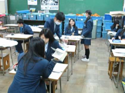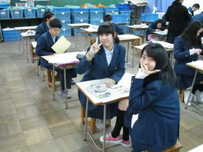3年は今日も普通授業です。これは5組かな。美術の授業です。