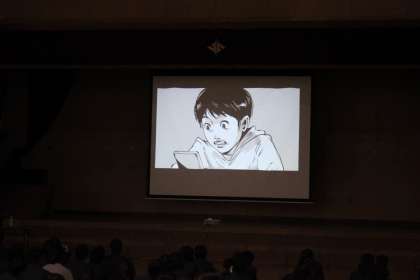 スマホやケータイに潜む危険性について、アニメを使いながら分かり易く説明して頂きました。アニメを見る時は真剣そのものです。