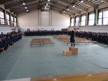 2年の部が終わると、校歌の全校合唱の練習です。これに3年生が加わったらいい声が響くと思います。