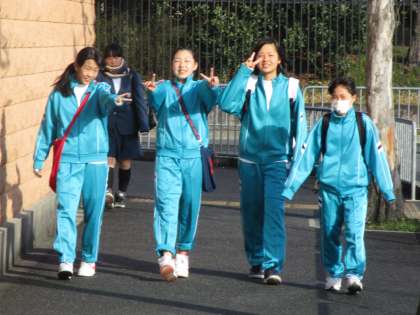 1年は1・2時間目に球技大会です。そこで、体操服での登校をしています。