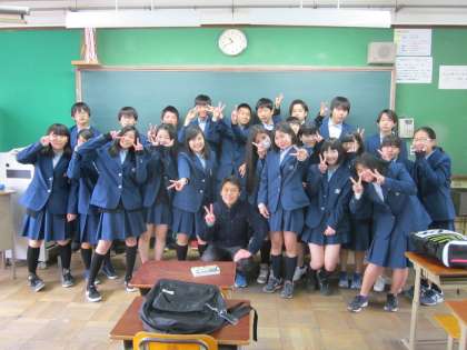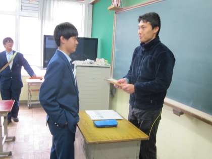 担任へ思い出アルバムを渡しました。「ありがとうございました」の言葉に詰まる生徒にクラスの生徒も泣き出す感動の場面がありました。
