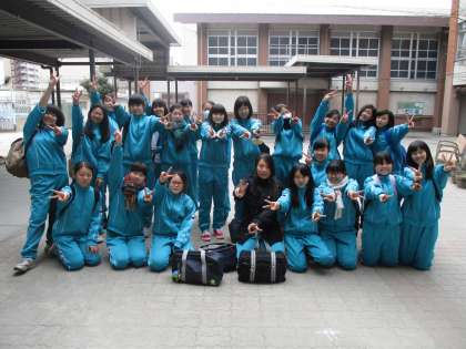 丁度活動を終えて下校するブラスバンド部の生徒たちに会いました。