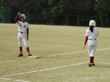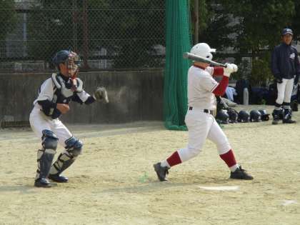 グランドでは、野球部が下京中学校を招いて練習試合をしています。