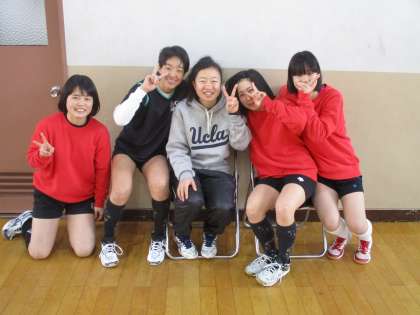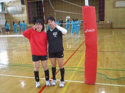 午後からの体育館では、バレー部と吹奏楽部とが半分ずつ使ってい練習をしています。