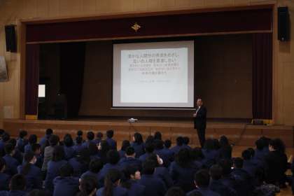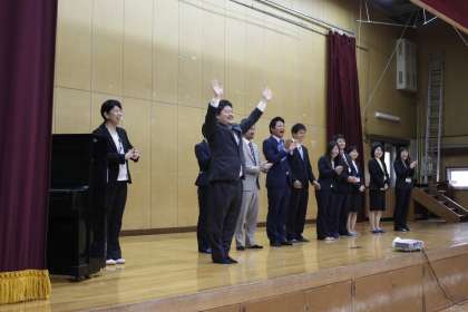 着任式後,引き続き平成29年度の始業式が行われました。校長先生からは『今年度は「挑戦」と「感謝」と「つながり」を大切にしよう』という話に続き,2・3年生を担当する先生方や部活動の顧問の先生方を紹介されました。