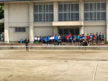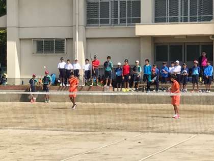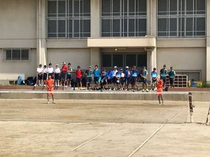 4月30日に,加茂川中学校において男子テニスの団体戦が行われました。対戦校は加茂川中学校でした。最後まで精一杯戦いました。結果は残念ながら,0対3で敗退しました。3日には個人戦が予定されています。頑張ってください。