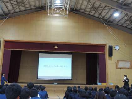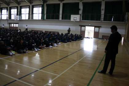 生徒からはたくさんの質問が出ました。最後はパスの練習をして集会は終わりました。吉田選手,本当にありがとうございました。