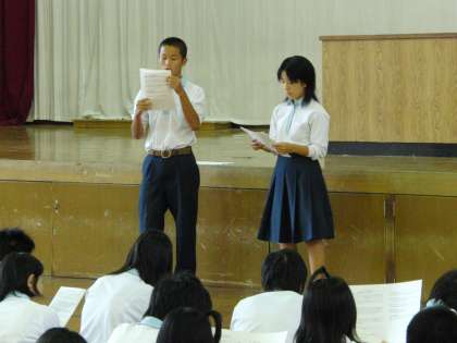 現状の服装のルールを見直すと同時に、より良い向島中学校の校風を築きあげていくために、代表委員・生活委員・生徒会本部役員による合同集会が行われた。今後、各学級において服装のルールについての話し合いがもたれる予定です。これからの向島中学校のよりよい発展のためしっかりと意見交換してください。