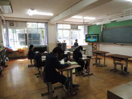 2日(火)の授業の様子です。6組は英語の音楽を使って楽しく授業をしていました。