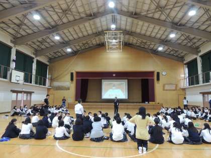 本日6限,体育館で1年学年集会が行われました。これから1年間の総合的な学習の時間の説明がありました。学習することによってどんどん視野を広げていってほしいと思います。