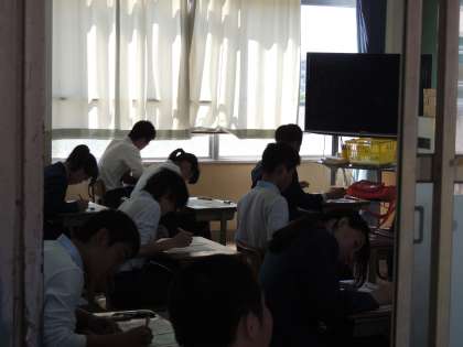 本日18日(木)より今年度最初の総括考査が始まりました。みんな真剣に問題に取り組んでいました。写真は6組・3年の様子です。