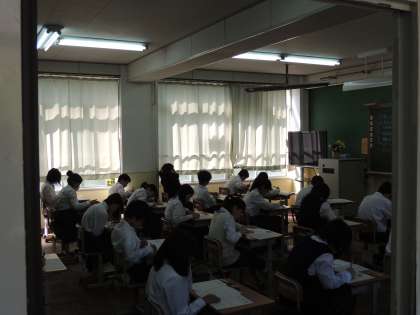 明日19日(金)の時間割は, 全学年 1限:数 学 2限:社 会 3限:学 活 です。がんばれ!!写真は2年・1年の様子です。