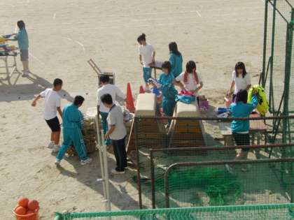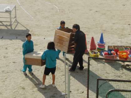 延期になっていた体育大会予行があります。朝早くから体育委員が中心となり、現在も準備中です。