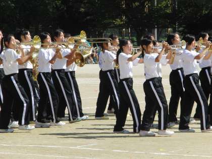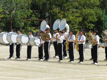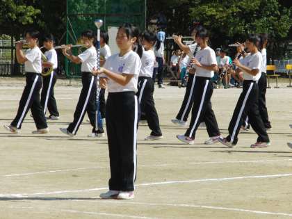 午後の部の開始では、関西大会金賞を受賞した吹奏楽部のマーチングが披露されました。