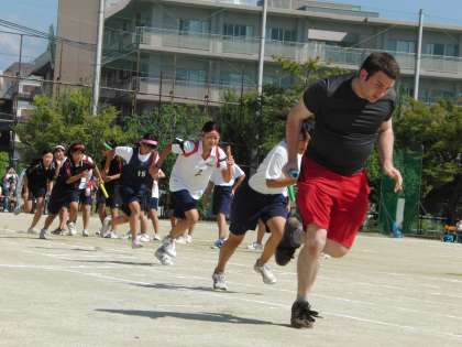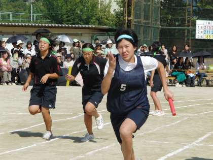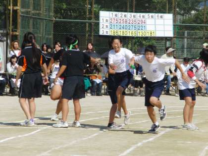教師も参加し、白熱した部活対抗リレーが行われた。