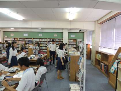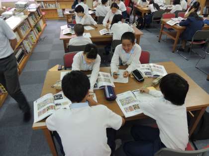 本日5限に図書室で2年美術の研究授業が行われました。図書室の本やipadを使った授業が展開されていました。