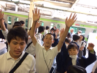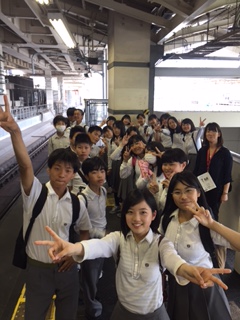 駅のホームに移動完了!これから電車に乗車します。午後の活動スタート!