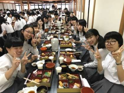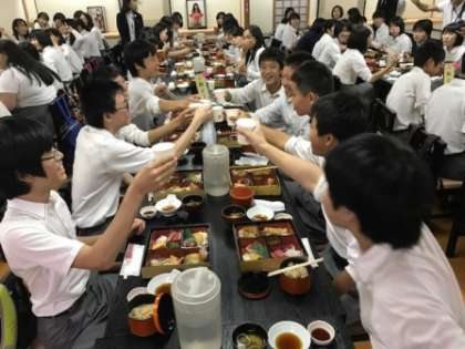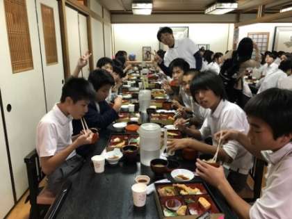 夕食の様子です。1組男子・1組女子・2組男子です。