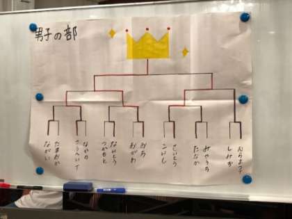 押し相撲男子の部。激しい戦いの中,先生も本気モードです。男子の部が終了し,上位入賞者の表彰式が行われました。