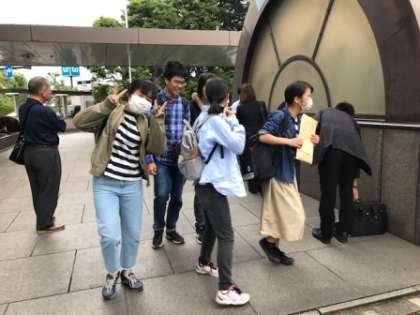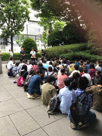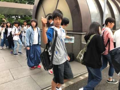予定通り朝食後,ホテルを出てB隊形で集合し,諸連絡がありました。いよいよ都内班別研修スタートです。班の仲間と協力して活動していこう!