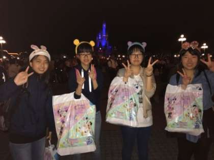 夢の国の時間も間もなく終了。お土産をかかえて集合場所へ戻ってきました。