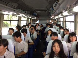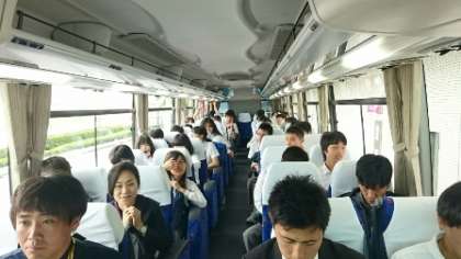 2台のバスでお台場に向かっています。子どもたちもまだまだ元気です!