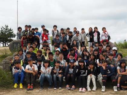 山頂で学年全員で記念撮影。この後も学年で一致団結していこう!