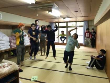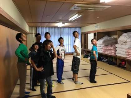 下山して宿舎でホッと一息。部屋での自由時間です。この後,お風呂に入り,夕食です。男子部屋の様子です。
