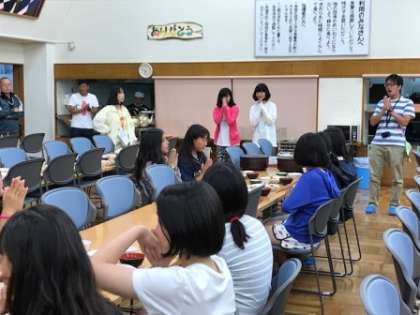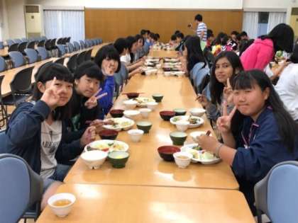 お風呂をすませて,夕食の時間です。食事係からの合図で「いただきます」