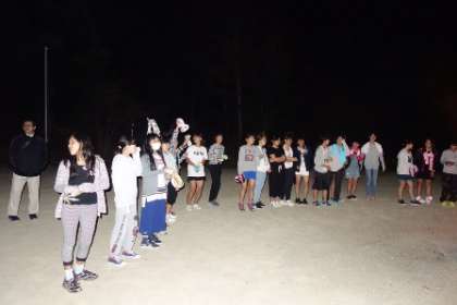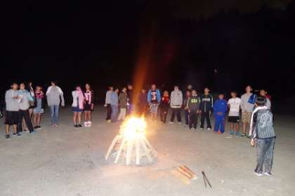 キャンプファイヤーでは夜レクの担当者が司会進行をつとめてくれました。内容も事前に準備していて,ジェスチャークイズ・イントロクイズなどなど。最後はみんなで歌を歌いました。