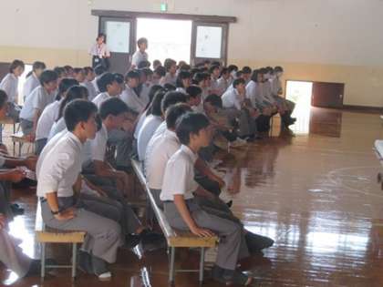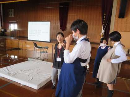 3年生は今日,伏見区役所の子どもはぐくみ室から講師の方々をお迎えし,「思春期の生と性」と題して,お話を聞きました。いのちの誕生の神秘的なことから,妊婦の体験も代表の何人かの人がしました。お母さんの大変さを実感できましたね。性感染症のお話を通して,自分自身の体を大切に考える事も学べました。思春期真っ只中の3年生にとって有意義な時間でした。