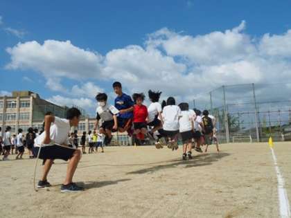 本日1,2時間目に向東祭体育の部の学年練習を行いました。入場から各競技の並び方を確認し,学年種目の台風の目と全校種目の大縄の練習をしました。各クラスそれぞれの持てる力を出し切って,思い出に残る体育祭にしてほしいです。