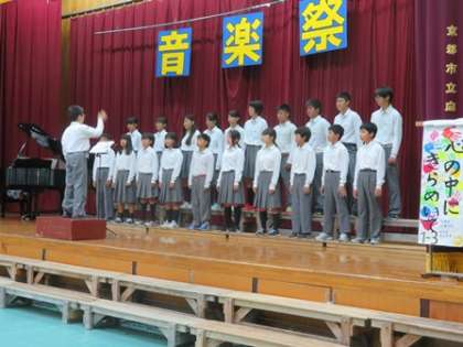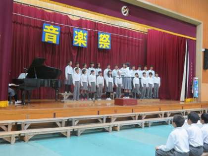 1年生各クラスの合唱のトップは3組の「心の中にきらめいて」,2・5組の「はばたこう明日へ」,そして1組の「明日という日が」と続きました。
