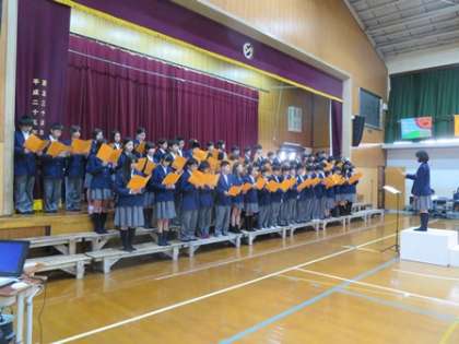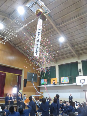 後半は3年生の発表からです。最高学年としての合唱が体育館に響きました。そして1年生の発表。短い練習時間でしたがきれいなハーモニーが創れてましたね。最後は恒例のくす玉割りです。見事に割れました!今年も迎える会は温かく,楽しい雰囲気でした。1年生も安心して中学校生活を送れそうです。