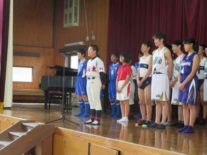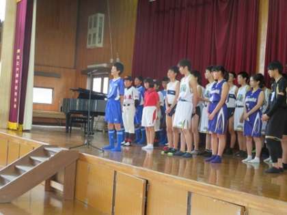 各部キャプテンの決意表明です。先ずはサッカー部,野球部,女子ソフトテニス部です。