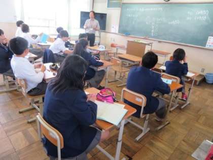 ゴールデンウィークも明後日から後半に入りますが,第1回テストが近づいてます。今日の学活はどの学年もテストに向けて範囲を確認したり,目標を立てたりしました。写真は1年生の学活の様子です。目標を立てた後は,自分の学習をしていました。中学校に入って初めてのテストですね。ここまで学習したことを連休中にしっかりと復習しましょう。