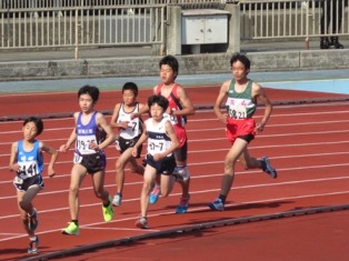 5月4日西京極陸上競技場にて陸上部の春季大会が行われました。100m,800m,1500mそして3000mに出場し,力走を見せてくれました。写真は1500mタイムレース決勝の様子です。