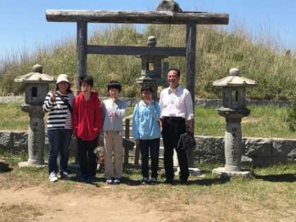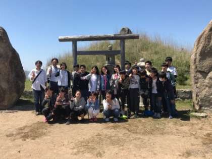 山頂でクラス別の記念撮影。3組と5組です。