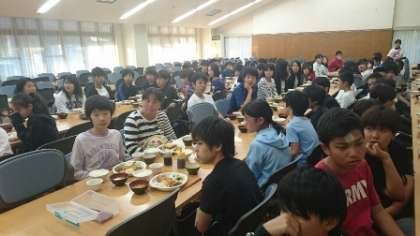 夕食の時間になりました。係の合図でみんなで「いただきます!」