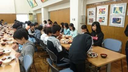 早起きしていろいろと活動したのでお腹ペコペコです。しっかり朝食を食べて,今日も1日元気よく活動しましょう!係の合図で「いただきます!」