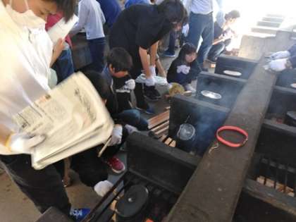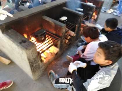 カレーになくてはならないご飯を飯ごうで炊いています。いい具合のおこげになるかな。