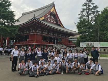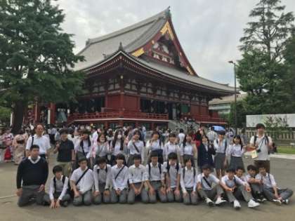 都営地下鉄で浅草寺にむかいました。浅草寺本堂をバックにクラス写真を撮りました。