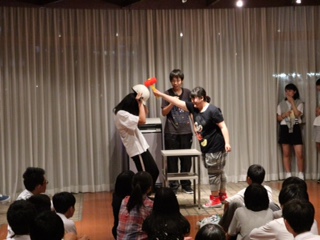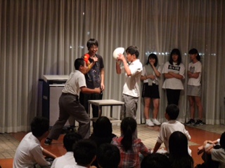 いよいよレクリエーションです。体育委員のみんなが企画してくれました。写真は「たたいてかぶってじゃんけんホイ」です。