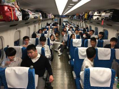 新幹線に乗りました。さすがに疲れも見えますが,あと少し頑張りましょう。16:17京都駅着予定です。