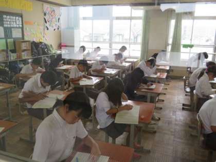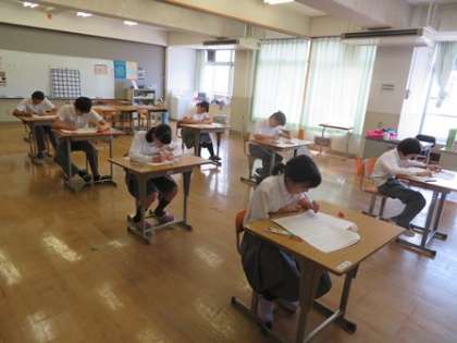 今日から第2回テストです。今回は実技教科も合わせて9教科ありますね。今日はどうでしたか?あきらめず,あせらず,あなどらず。あと2日。がんばりましょう。このテストが終われば,夏休みが見えてきます!