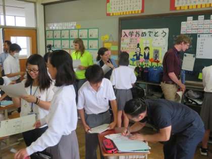 今日の6時間目に1年1組の英語はALTの先生との研究授業でした。たくさんのALTの先生方が来られて,英語で友達を紹介することにチャレンジしました。みんな積極的に英語を使って,紹介ができていましたね。