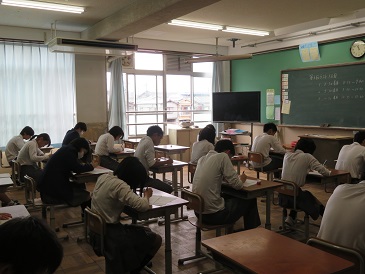 3年生にとっては進路を決める上で大切なテスト。そして残りの定期テストも今回を入れて残り3回です。悔いのないように,明日もがんばりましょう。