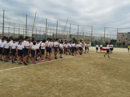 雨で延期になった体育の部の予行が本日,行われました。いよいよ向東祭に向けて始まりました。